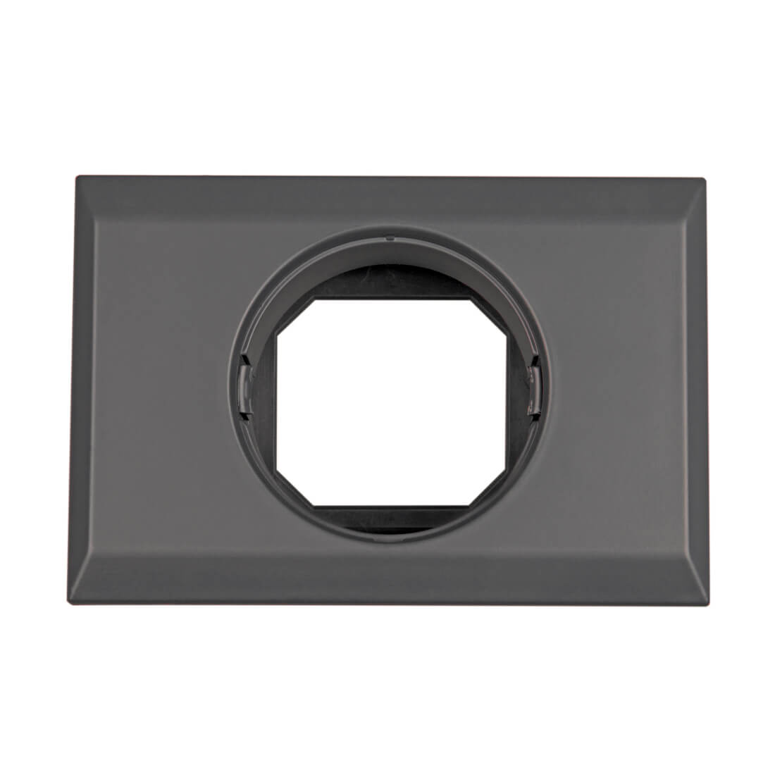 - Eenvoudige installatie: aparte frontpanelen (vierkant of rond), ring voor montage aan de achterzijde en schroeven voor montage aan de voorzijde.
